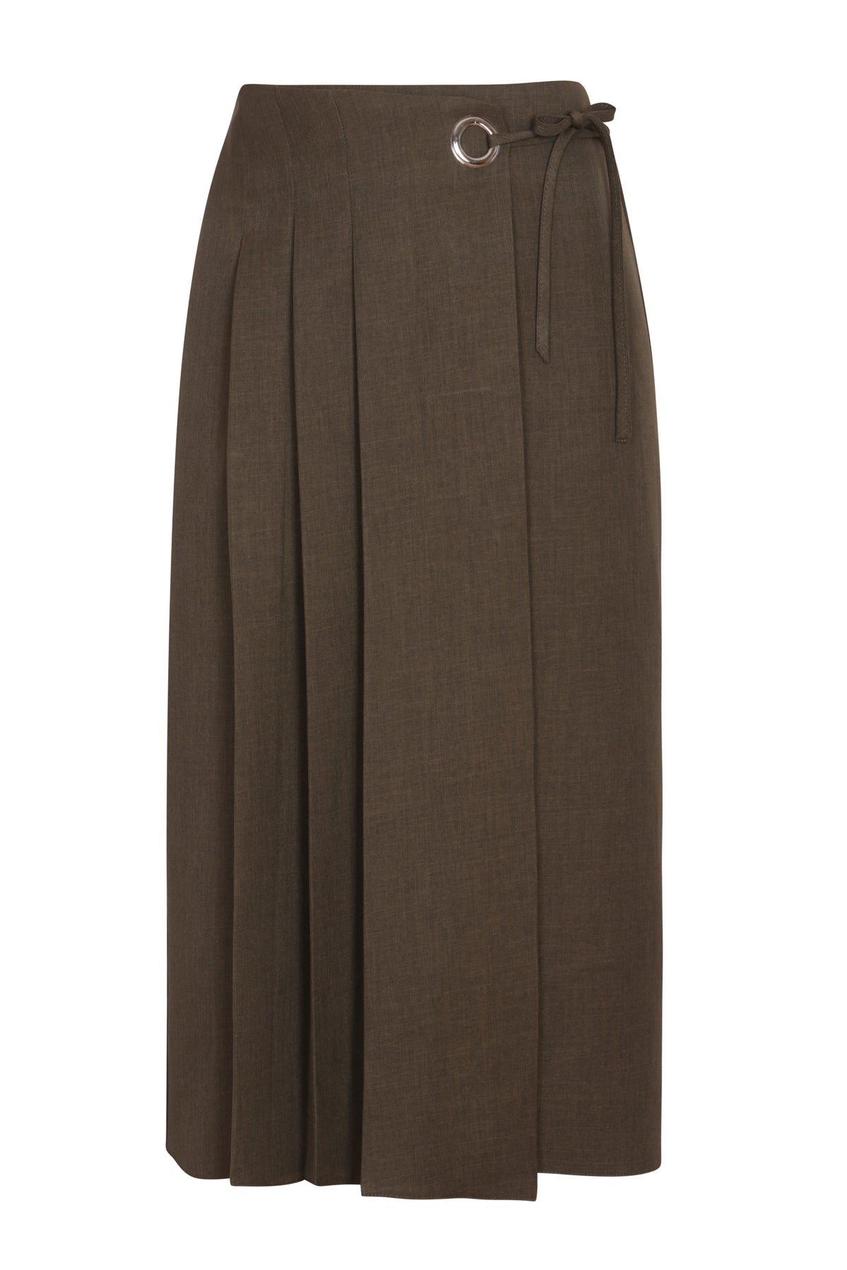 Cut on an asymmetric line with a clean wrap front, metal eyelet detail and box pleats, this kilt is the ultimate trans-seasonal piece.