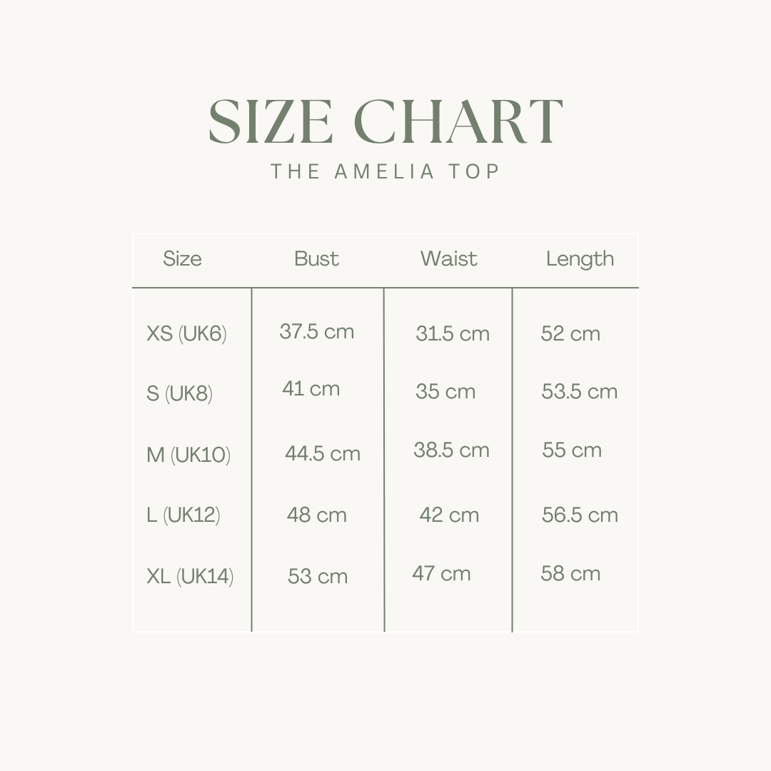 Our pieces are designed for a relaxed yet flattering fit. We recommend checking our detailed size guide for measurements and fit notes. If you’re between sizes or unsure, our customer care team is always happy to advise.