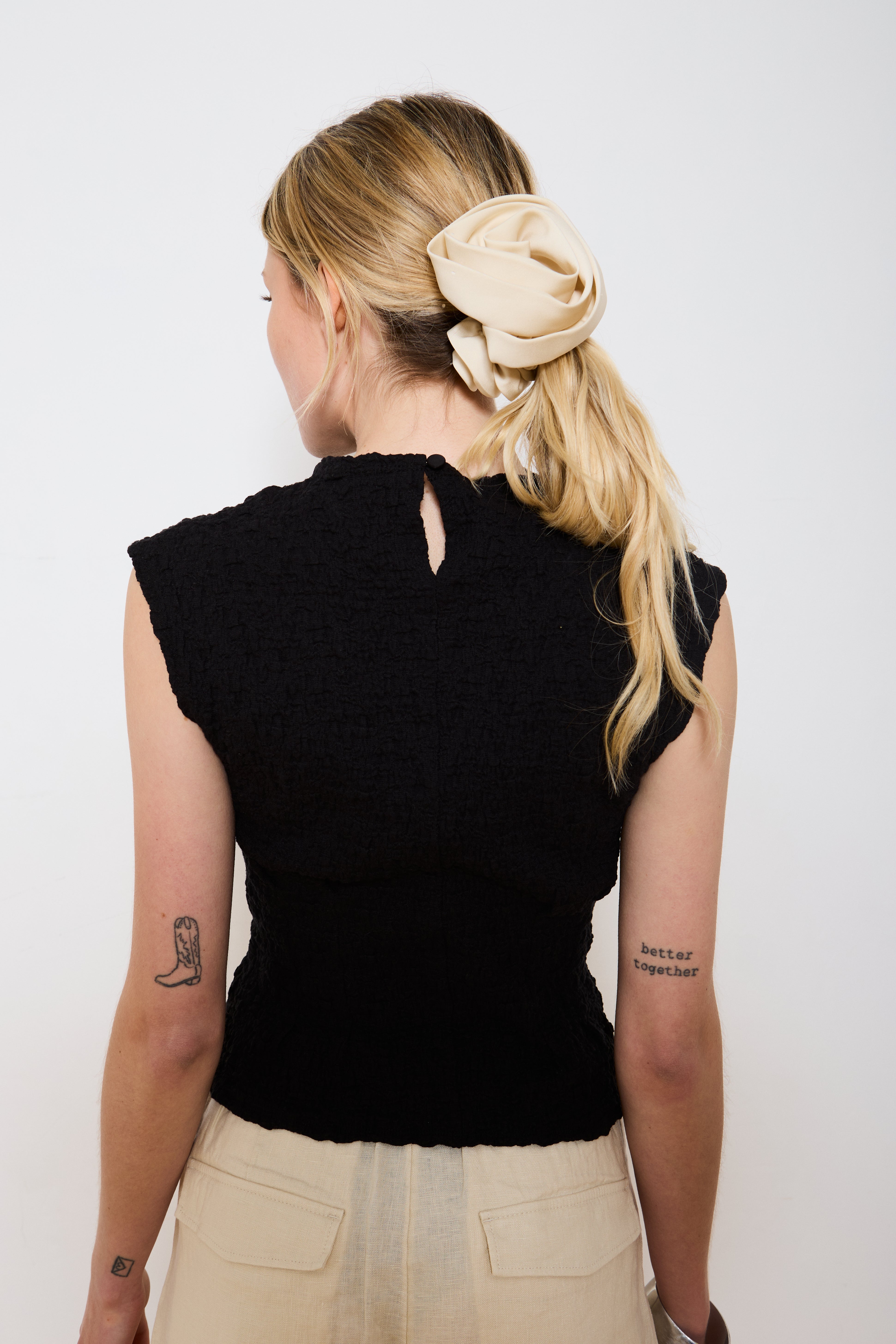 Our bestselling Amelia shape is back and in a brand new fabric: A fitted bodice with carefully positioned pin tucks ensure a flattering silhouette for all shapes. With its high slit neckline and perfectly cut capped sleeves, it offers enough coverage to wear to work with enough sass for going out.