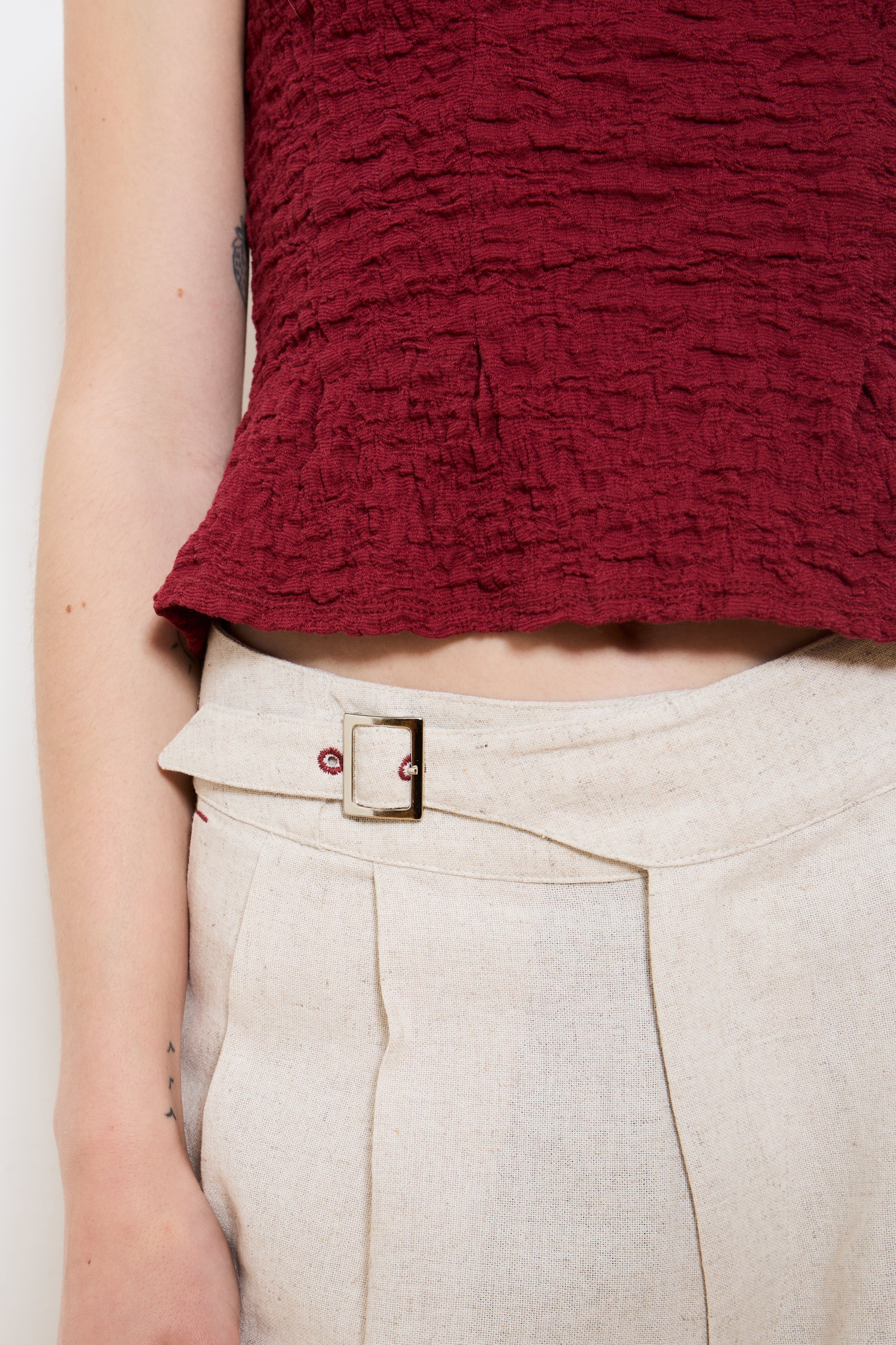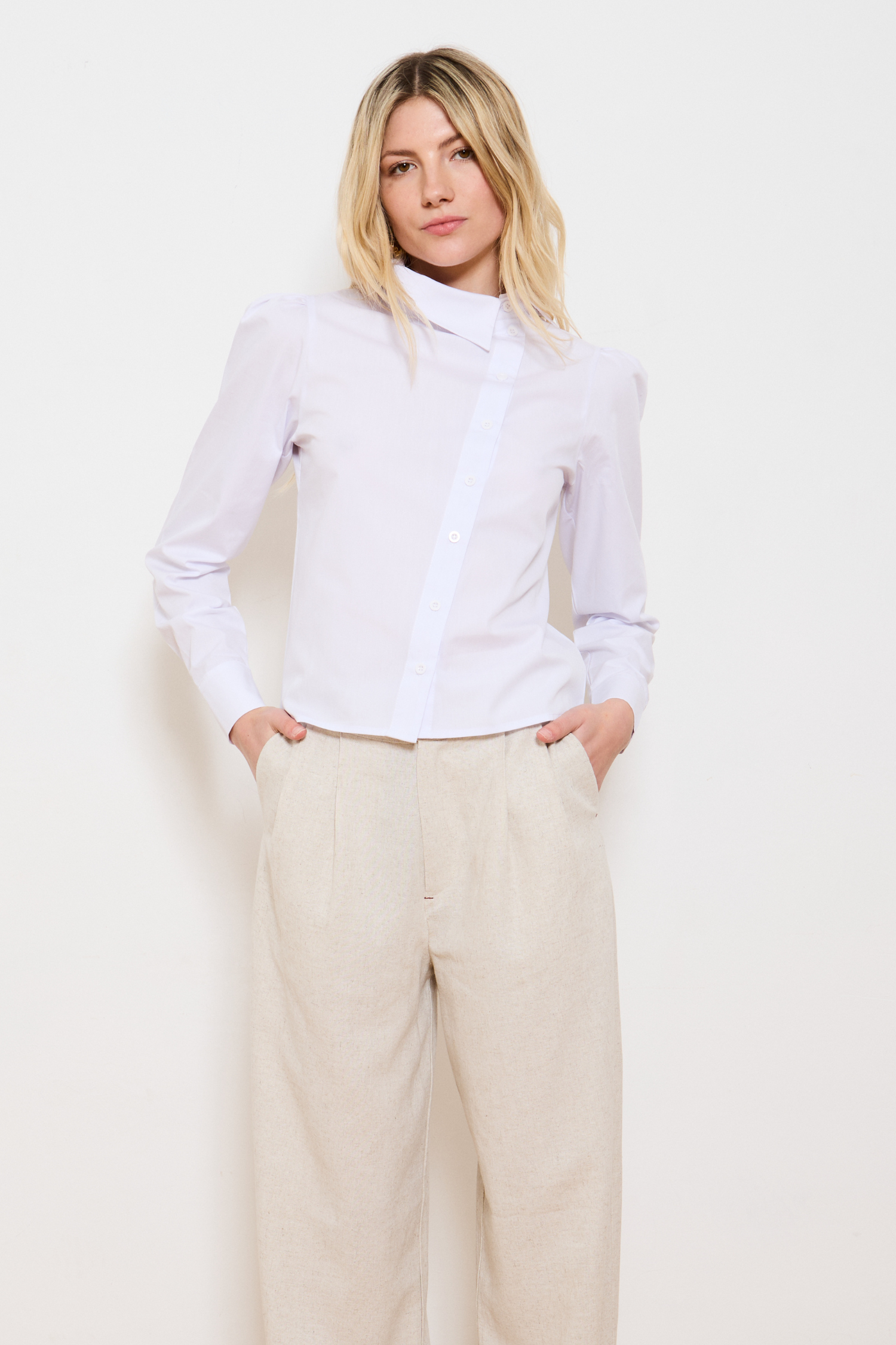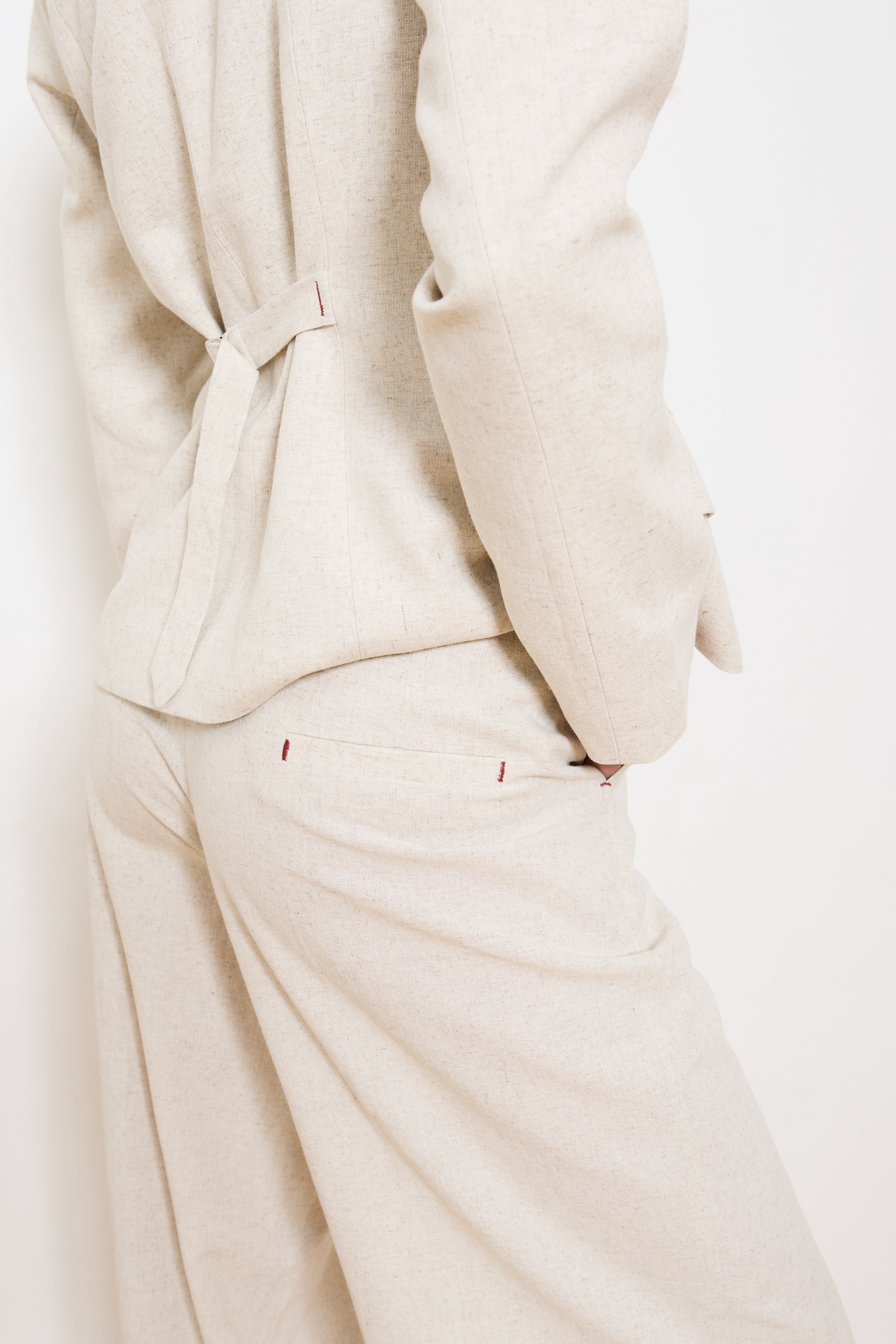As a nod to our AW24 pinstripes, these linen trousers are similar in style but a slimmer fit with a straight leg, flattering front pleats and our signature contrast stitching. The perfect neutral trousers that go with everything, including our stunning ELLE jacket.