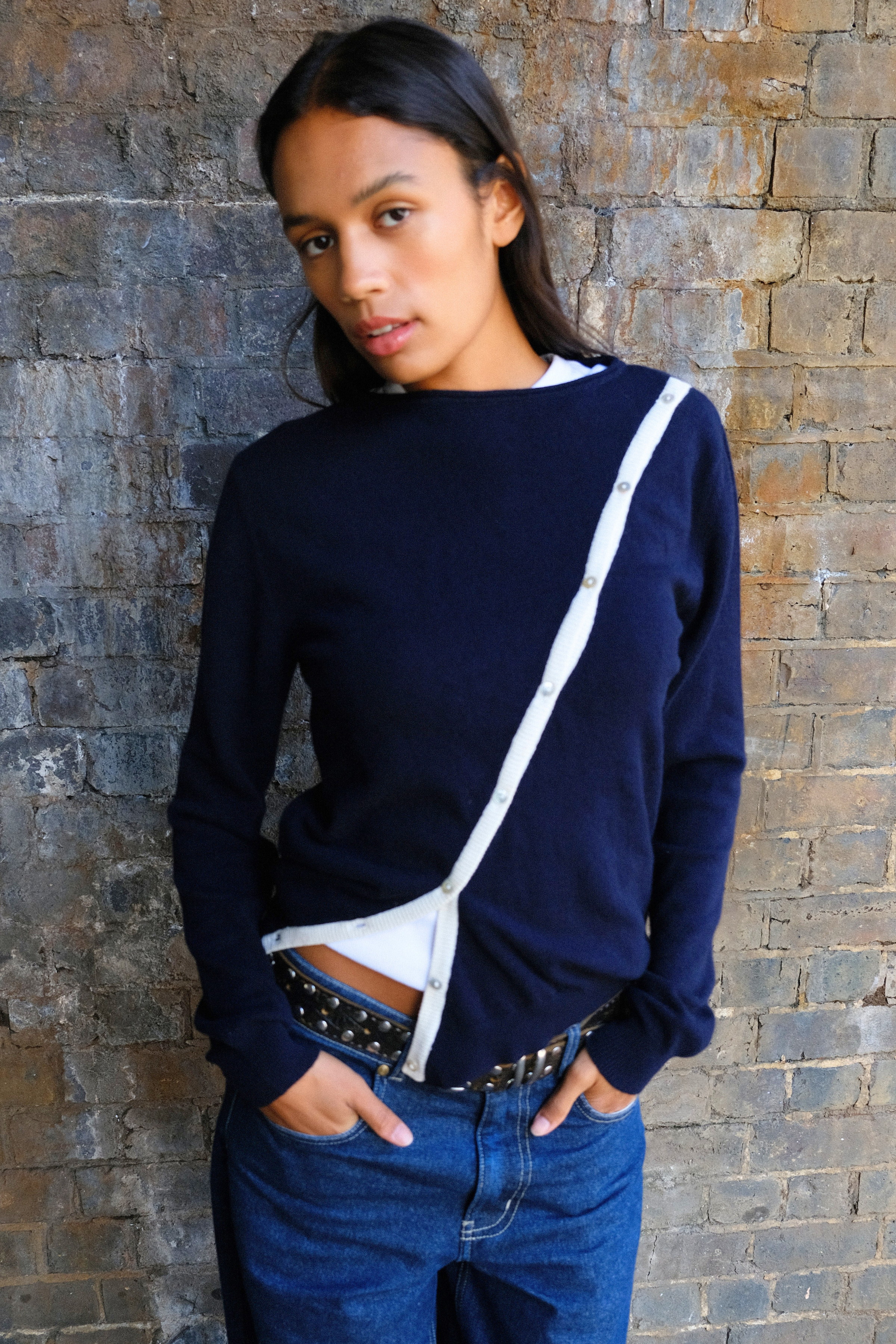 Revolutionising the idea of the traditional cardigan, our design gives a modern take to this much loved knit. Soft cashmere is crafted into a classic shape, with a gentle crew neck and generous length sleeves. A contrast asymmetrical opening at the front is adorned with mother of pearl buttons and offers multiple styling options - wear it fully buttoned or slightly undone for individual style.