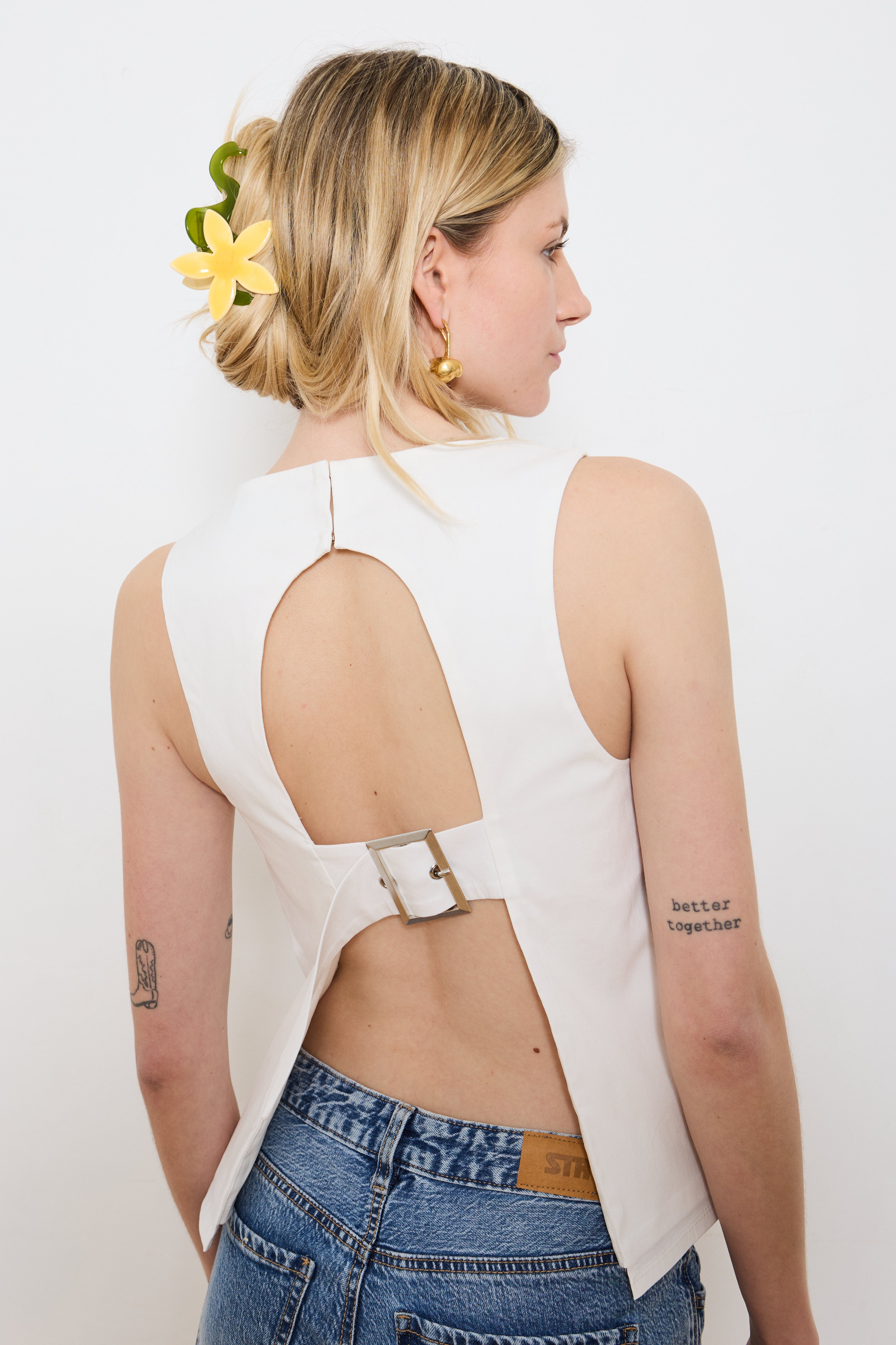 The Betty Top was inspired by the classic ‘California beach Betty’ and the charm of the 1970’s swimsuit: featuring a sleek, structured front balanced with an open-back design and silver buckle detail. The Betty top blends the retro swimsuit design with contemporary sophistication, giving a nod to the independent women of the 70’s.